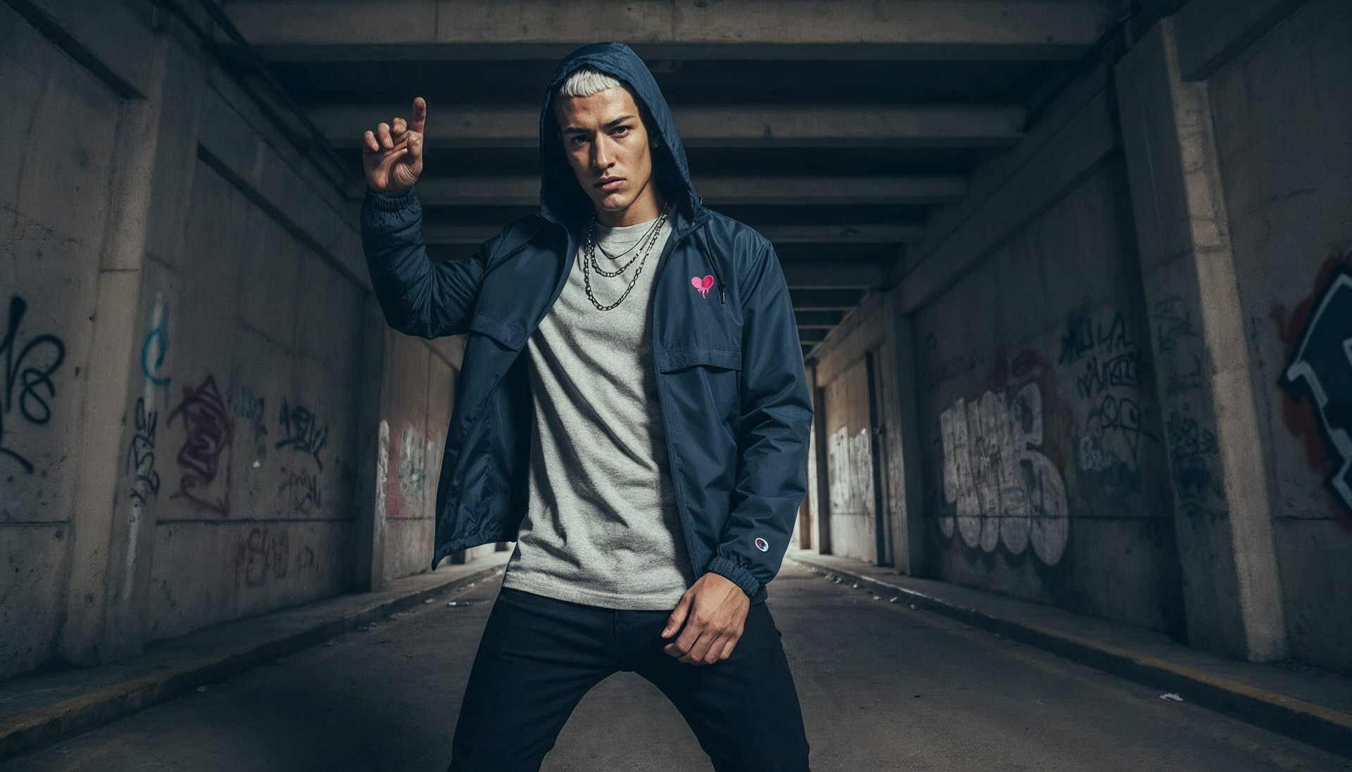 "Broken heart" Embroidered Champion Packable Jacket design by Hero.