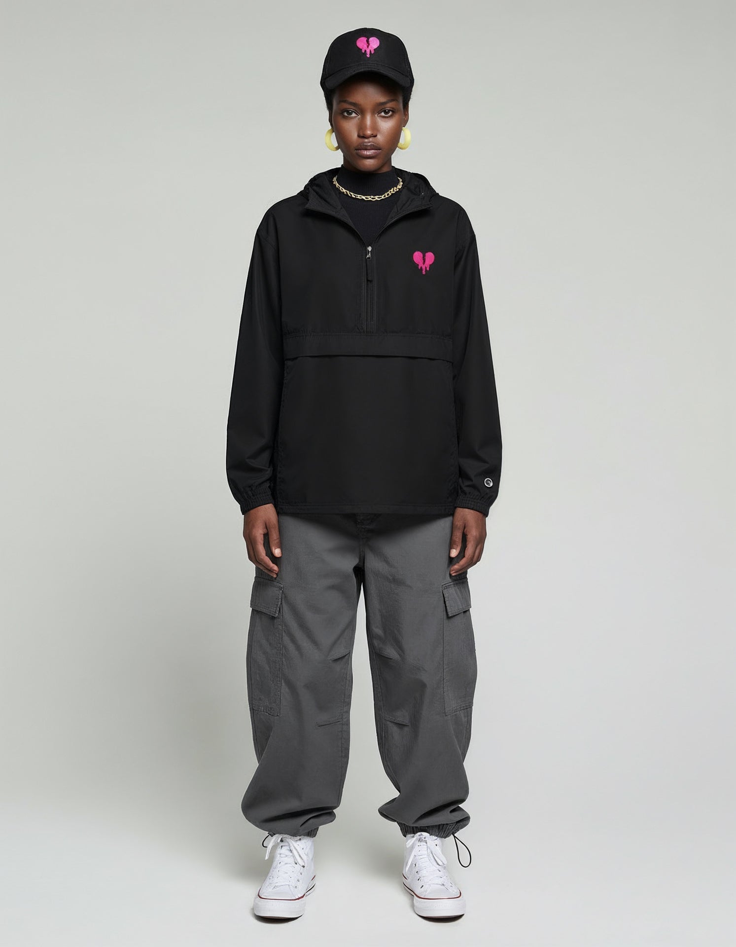Broken Heart Champion Windbreaker – A unisex embroidered jacket that includes a free packable bag so you can wear it with pride! Protect yourself from the elements with this Champion packable jacket. This wind and rain resistant polyester jacket with a detailed embroidery design has a practical hood, front kangaroo pocket, and zipped pouch pocket which you can pull out and use to scrunch the jacket into for convenient storage.