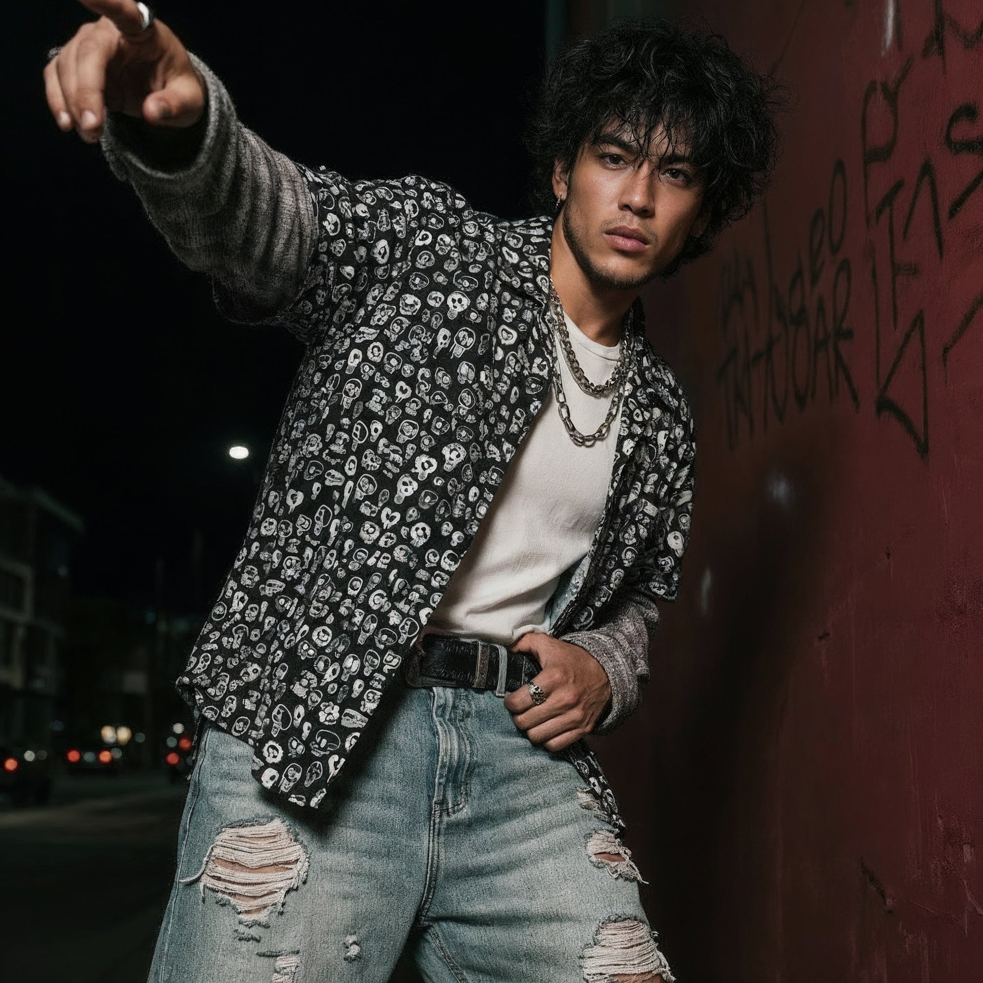 It’s streetwear meets art gallery — sharp lines, cool tones, and an oversized cut made for creative souls who thrive on contrast.